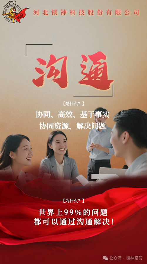 溝通,是實現鎂神組織協同、高效的工作方法;溝通是解決問題的良藥;世界上99%的問題都可以通過溝通解決!