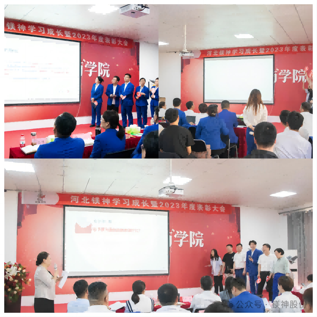 2024年4月17日,伴隨著全體員工鏗鏘有力的宣誓聲和氣勢磅礴的歌聲,河北鎂神學習成長暨2023年表彰大會拉開了帷幕……